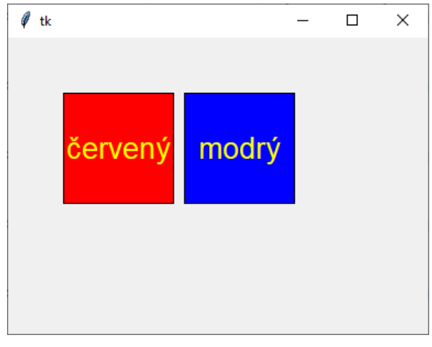 - písmo textů zvětšíš (například parametr fill='arial 20') a obarvíš žlutou barvou (parametr fill='...')