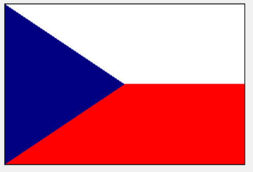 - Napiš program, který nakreslí vlajku ČR v proměnných sirka,vyska = 300, 200 jsou zadány rozměry vlajky, modrý klín zasahuje do poloviny šířky vlajky: