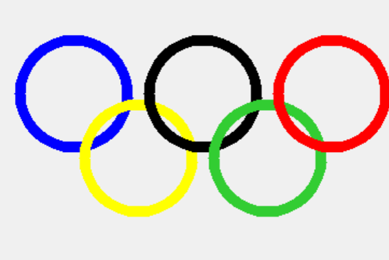 Napiš program, který nakreslí olympijské kruhy. V proměnných: x, y = 80, 100 r = 50 dx, dy = 120, 6 má zadané: souřadnice středu horního levého kruhu, poloměr kruhů, vzdálenost mezi kruhy v jedné řadě (dx) a vzdálenost mezi řadami (dy). Tloušťka čar kružnic je 10: