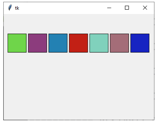 Napiš program, který nejprve načte n a pak mezi šířku 10 a 380 vykreslí co nejvíc čtverců (s mezerou 5). Pro dané n musíte vypočítat velikost čtverců tak, aby dobře vypadalo. Čtverce vyplňte náhodnými barvami:
