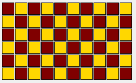 Napište program, který nakreslí barevnou šachovnici. Nejprve si načte počet sloupců a řádků (pomocí input()). V proměnných vel = 30, barva1, barva2 = 'maroon', 'gold'má nastravenou velikost čtverečku a dvě barvy, které se mají na šachovnici střídat. Mezi čtverečky šachovnice je mezera cvelikosti 3.